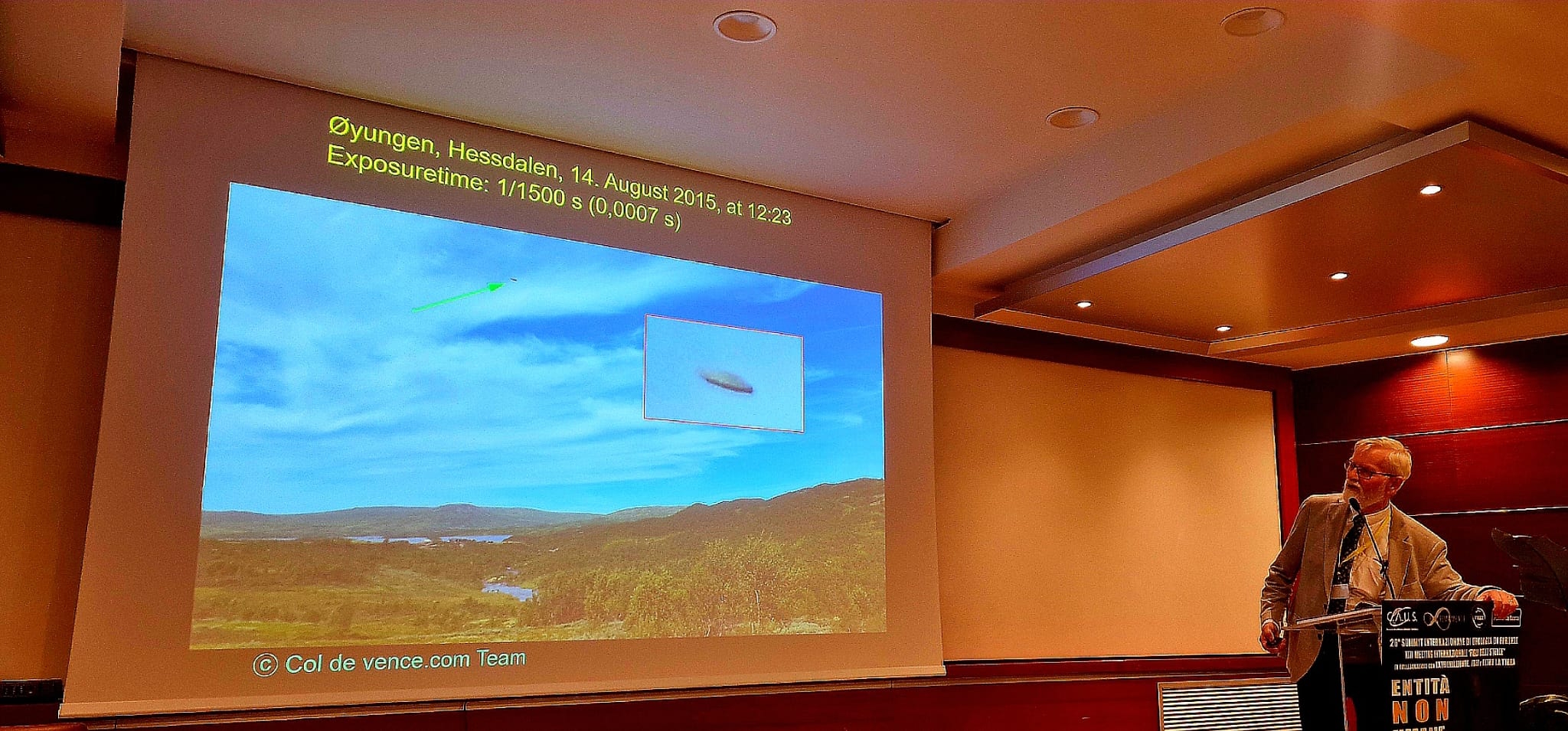 Projetction de diverses photos réalisées par l'ufologue Nicola Tosi sur un spot où des phénomènes très étranges sont régulièrement observés en Italie.