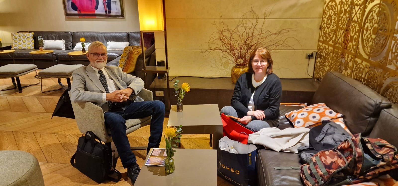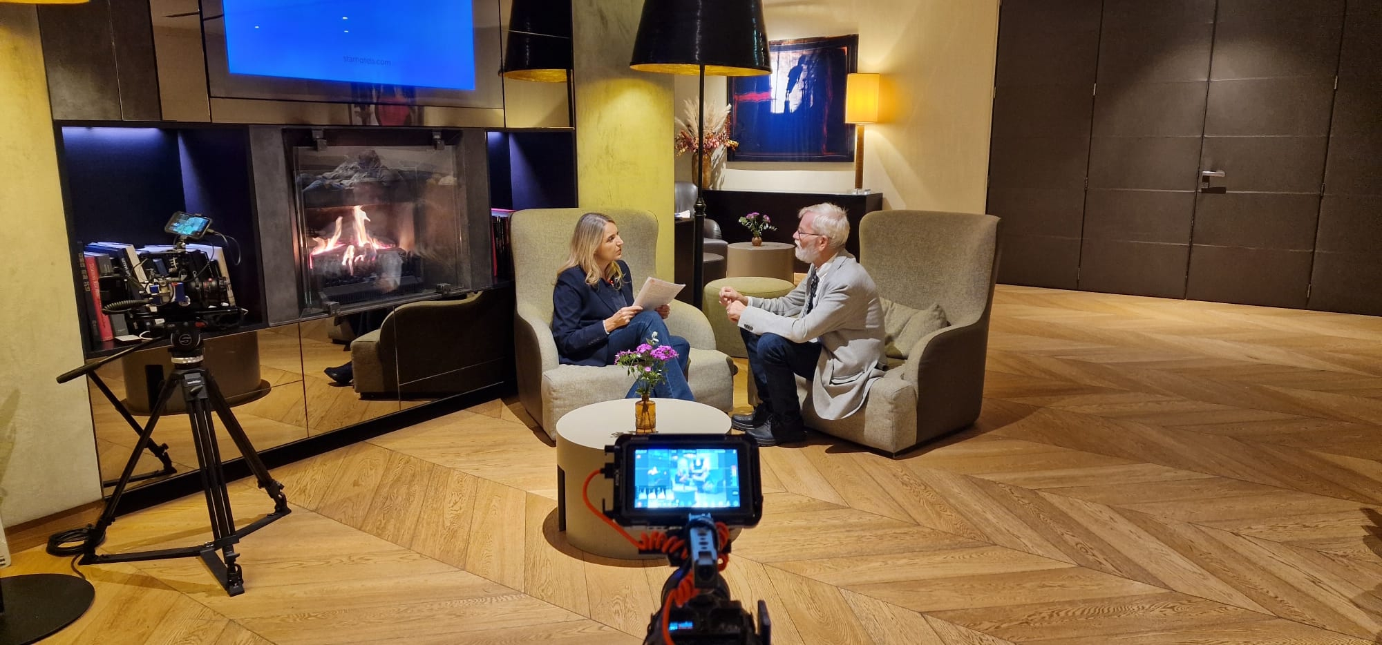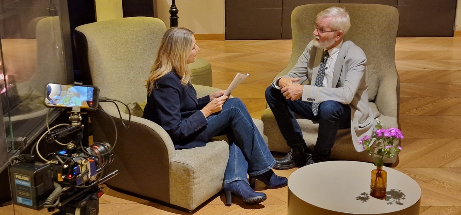 Interview par la presse italienne du professeur Erling Strand dans les salons de l'hôtel.