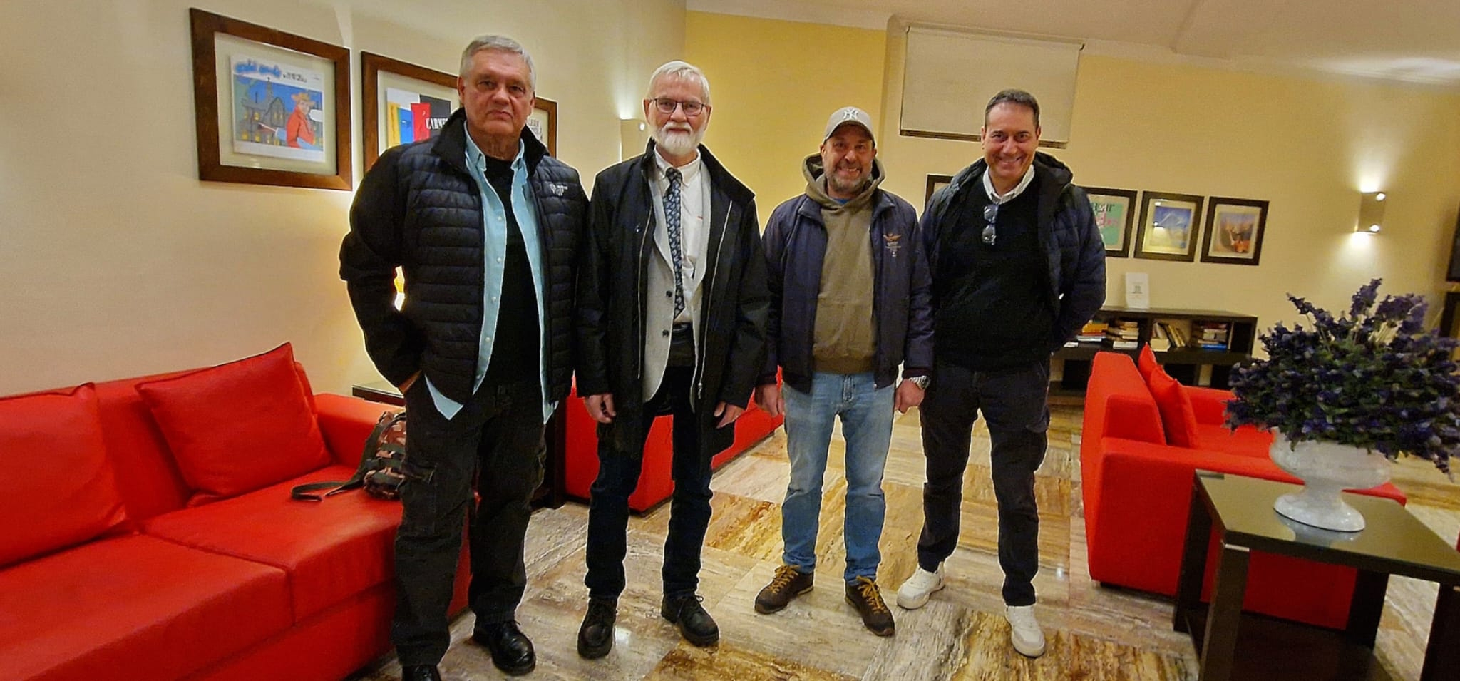 De gauche à droite: Pierre, Erling Strand, Nicola Tosi et le journaliste Massimo Dallaglio