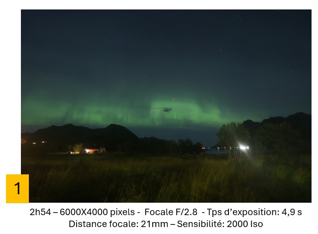 Entre l’image 1 prise à 2h54 et l’image 6 prise à 2h56, on note un léger déplacement de la gauche vers la droite en prenant en repère l’arrière-plan constitué par les étoiles.